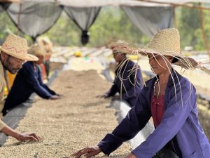 During the rainy season, temperatures reach 25℃/77℉, with higher humidity than the rest of the year. These conditions are ideal for coffee plants but troublesome for logistical operations in the field due to high chances of mud on dirt roads. The producers of Idido intercrop their coffee with native trees of the area like the false banana tree to shade and fertilize their fields. Since the producers deliver all their coffee in cherry, they don’t have the waste generated by depulping to compost with, so the collection centers prepare and store organic compost and distribute it among the producers. Their coffee is fermented between 48 and 72 hours in fermentation tanks then dried between 4 and 5 days on raised beds, based on climate. The majority of producers here belong to the Gedeo culture and speak the Gedeo language. The traditions of their native culture are still very present in producers’ daily life. For instance, birds and domestic animals like dogs and cats are highly respected in the Aricha and Idido areas. Life in Idido can be idyllic in some ways, but equally complicated in others. Since many farms are remote, access to clean water, electricity, and school for children is a constant challenge. That means children from the most distant farms often start working from a very young age. Opportunities are very few in Idido, but migrating to other cities is not a great option for young people in the area due to the large education gaps between their region and the city. Many young people decide to stay on their parents’ farms or buy neighboring farms and continue dedicating themselves to coffee for the rest of their lives. We hope to represent the hard work and proud coffee growing tradition of this region by doing justice to the coffee in the roaster and the cup.